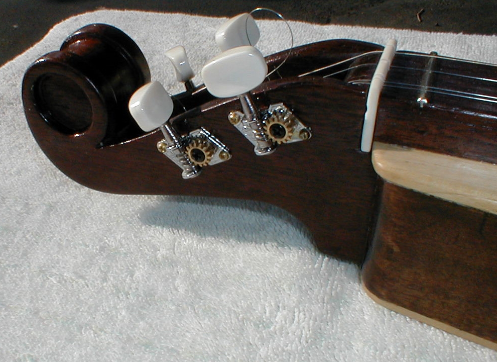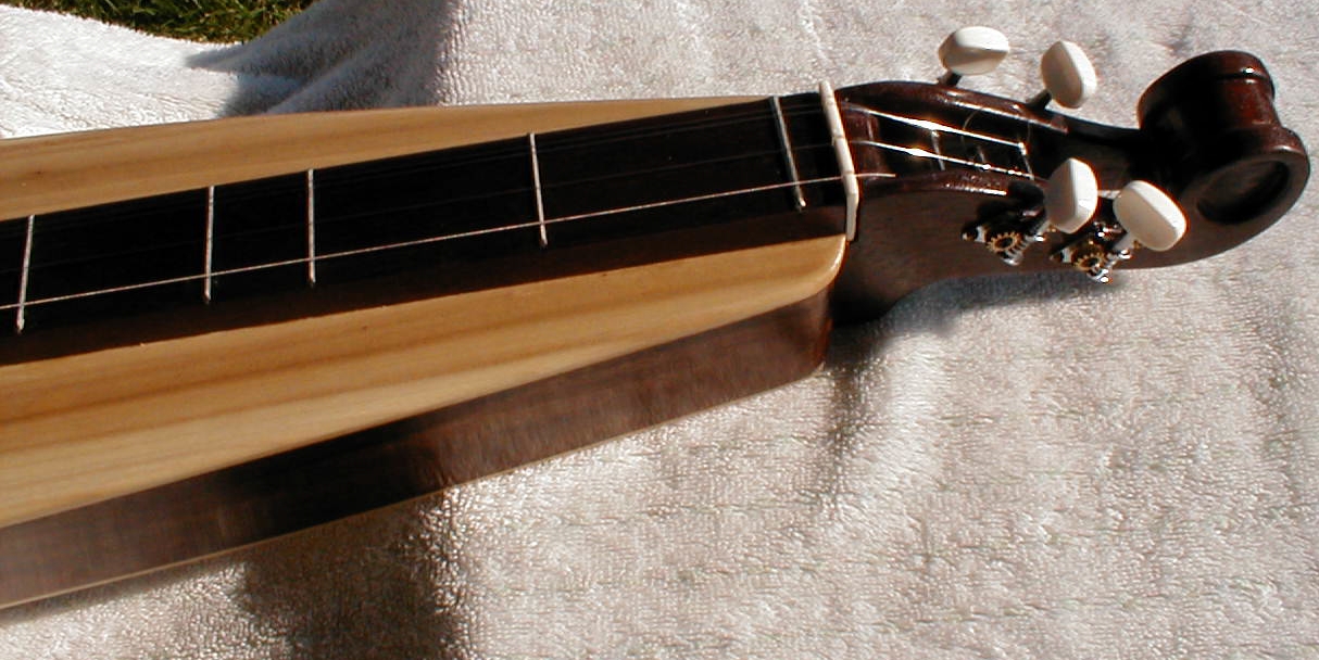 I also substituted bone for the walnut nut and bridge pieces that come with the kit. No good reason except that I like the white and think it offers a nice contrast to the dark wood. I don't know if the bone changed the sound since this is my first dulcimer. I also added a 6 1/2 fret. Something Fran says allows her to play more songs. The extra fret is now an option that Jeff offers.