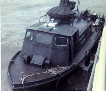 The photo above was taken during Operation Bold Dragon. It shows Seal Team members on the fantail of WEISS after a mission. Click on the image to to see a larger view. This is Swift Boat PFC 38 along side WEISS |